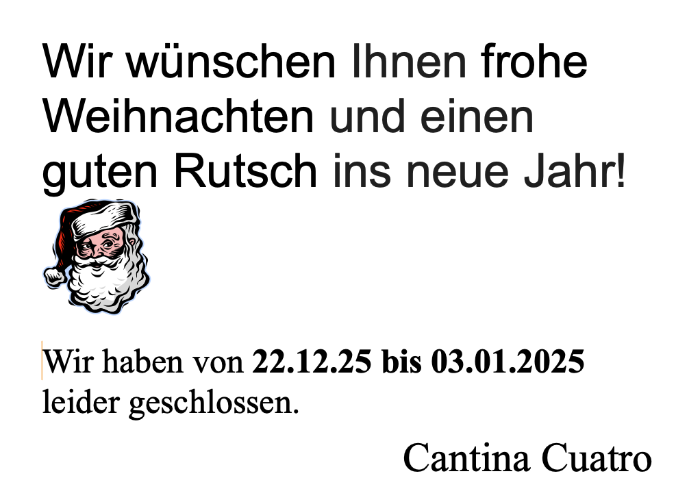 Das Kantinenrestaurant unter der Leitung von Juan Carlos Hahn zeichnet sich durch eine sehr kreative, abwechslungs- reiche, internationale Küche aus.
